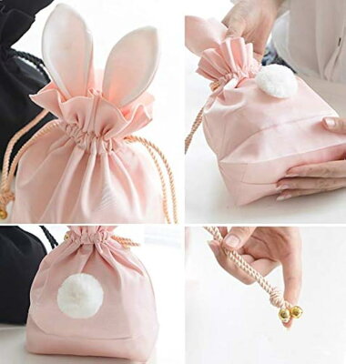 ウサギ コスメポーチ 化粧ポーチ 化粧品 たっぷり 収納 化粧バッグ メイクポーチ コスメケース 巾着 旅行(ピンク)